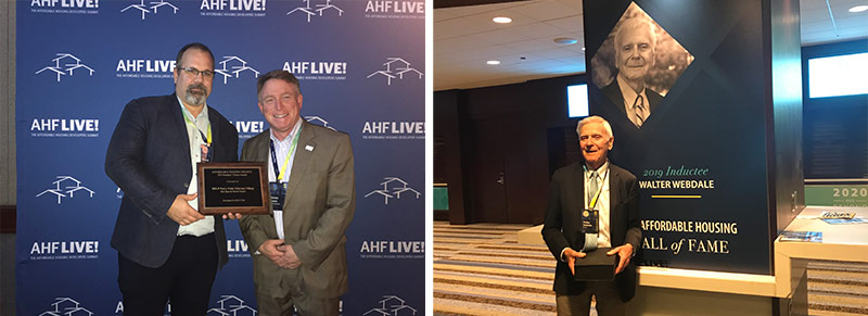 Harkins and HELP USA accept Reader’s Choice Award (left) and AHC CEO Walter Webdale inducted into Affordable Housing Finance’s Hall of Fame (right).