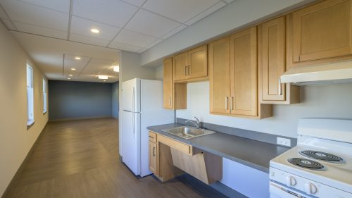 Located on Powell Street in the Black Horse neighborhood, this new 38,175 sf residential building is comprised of 40 one-bedroom affordable apartments. The wood frame structure is four stories, which is the same as the senior living community next door from phase two.